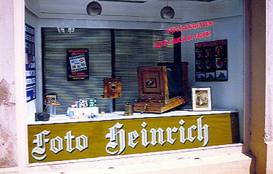 シュヴェリンの写真屋さんの店先ですが、ガラスのショーウィンドウに赤い文字で書いてあるのは「FOTOARBEITEN, JETZT AUCH IN FARBE」・・・写真加工、カラーも始まました!1990年といえば西独ではカラー写真など当たり前でしたが、ここではまだこれからだったようです。