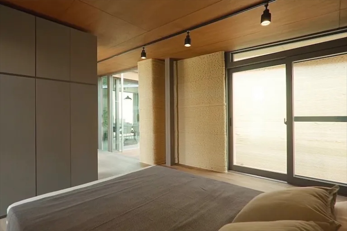 壁はイタリア企業ワスプ社の建設用 3Dプリンター「クレーンワスプ」で印刷された。クレーンワスプはセメントの代わりに土などの現地調達材料を活用するよう設計されている。壁には最先端センサーが組み込まれており、壁内結露監視システムとして壁内部の温度・湿度をリアルタイムで追跡する。さらに太陽光パネルとテスラ社の Powerwallバッテリーを組み合わせ、電力自給を実現している。