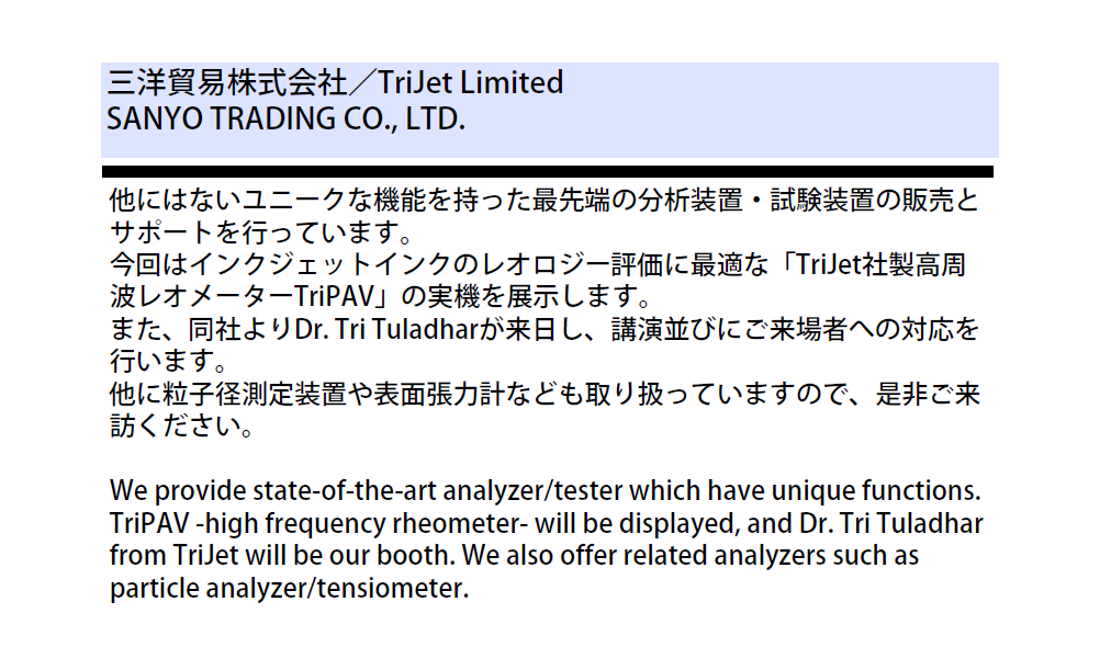 ![]() ![]() 最大10kHz!高周波レオメーターTriPAVのご紹介 本セミナーでは、最大10,000 Hzまでの測定に対応するピエゾ式高周波レオメーター「TriPAV」を、実際の測定事例を交えてご紹介します。 速水 響平 Kyohei Hayamizu 科学機器部1G Scientific Instruments Dept. Group Manager Tri Tuladhar TRIJET LIMITED 詳細はここをクリック Click to see the detail |
