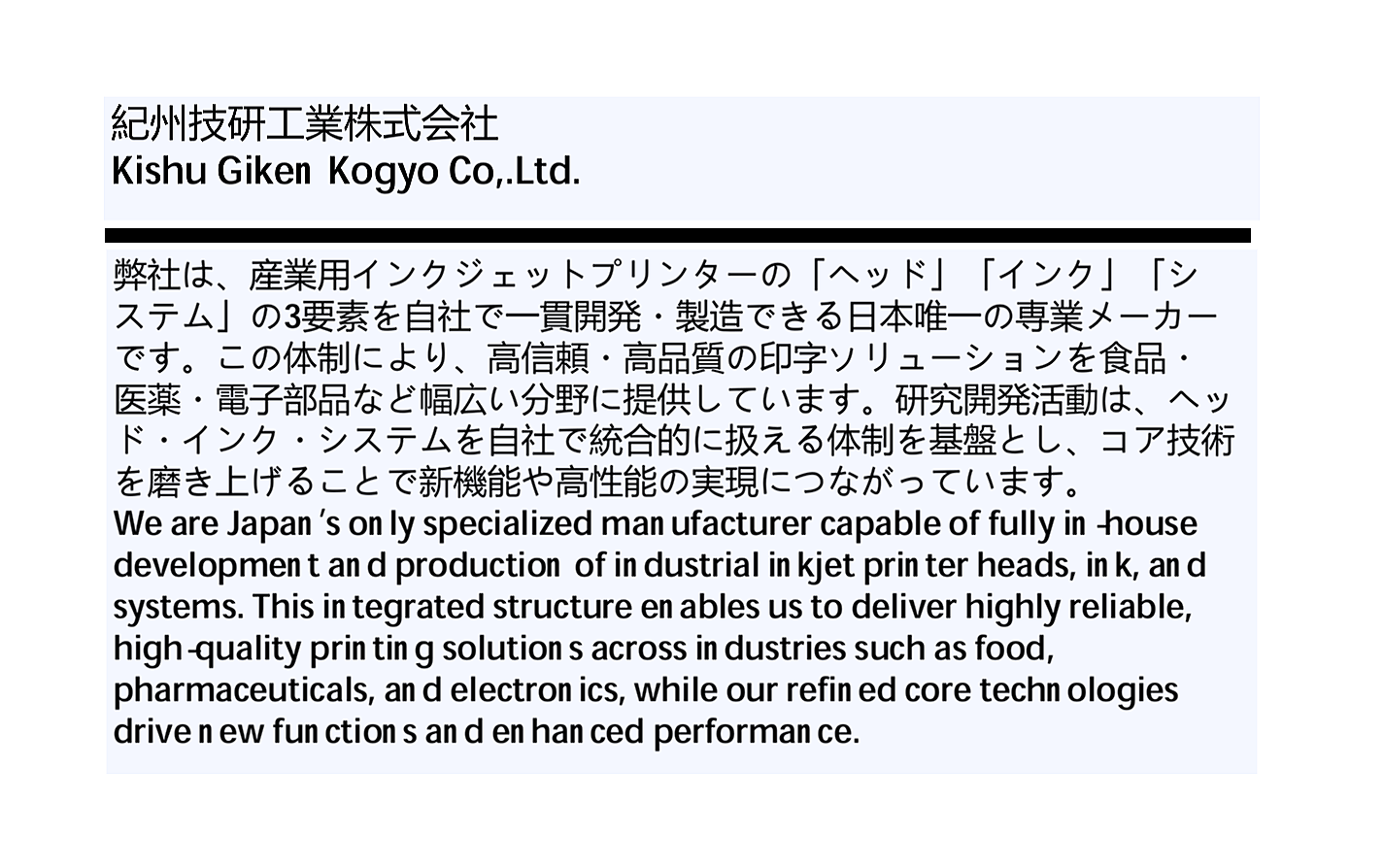 紀州技研工業のコア技術で拓くインクジェット機能開発 強みを基盤としたコア技術の展開と、それによって実現可能となる新たなインクジェット機能開発について、具体的な取り組み事例を交えてご紹介いたします。