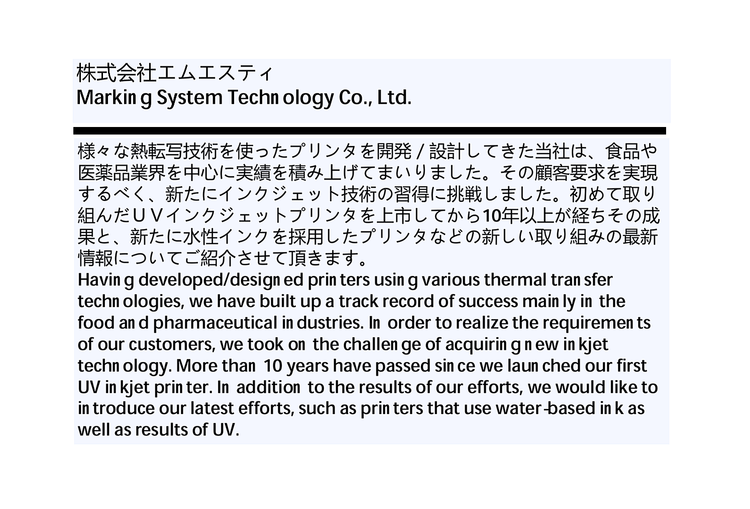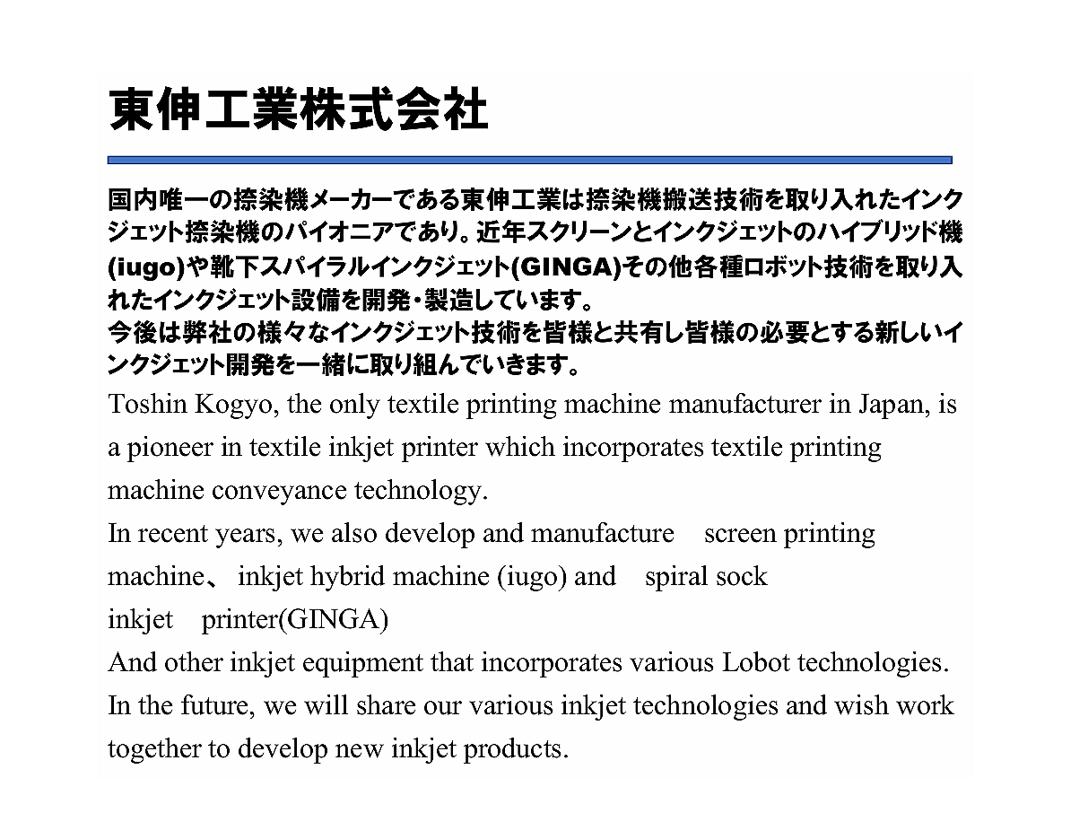 演題:「現在のインクジェット市場について」 現在のインクジェット市場の動向に関して弊社のインクジェット関連事業の紹介とあわせて紹介させていただきます。