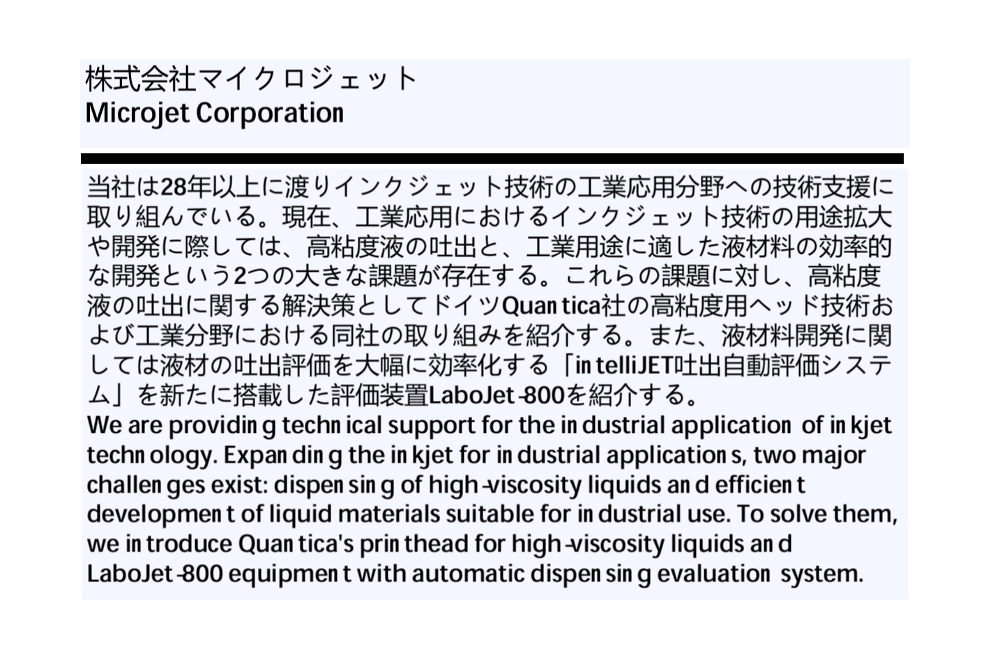 ![]() Quantica社の高粘度用ヘッドと液材料開発を効率化するintelliJET 前田 憲宏 Norihiro Maeta |