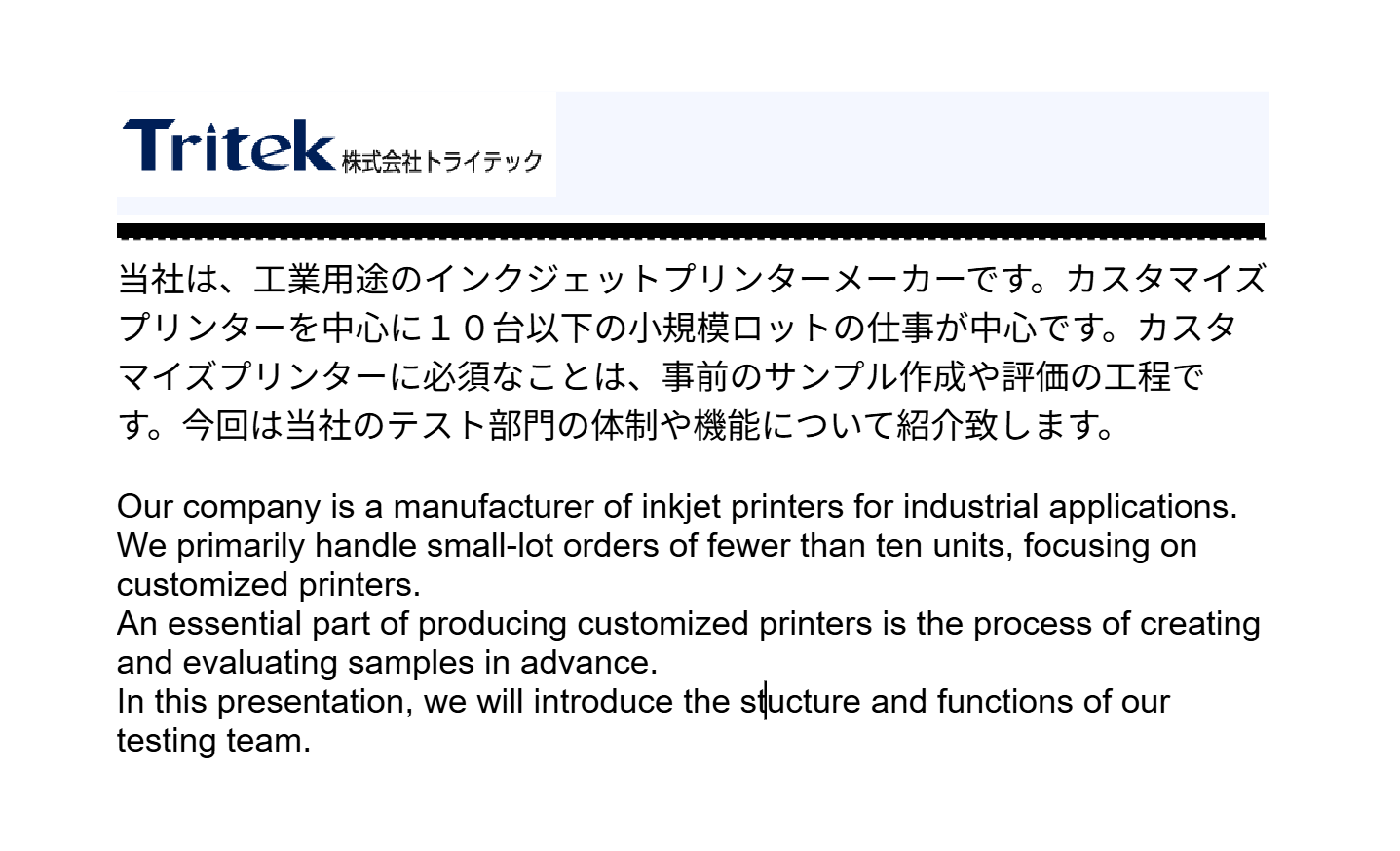 ![]() 当社のテストグループが有するテストプリンターの種類やどのようにお客様の要望に対応しているかを説明します。 We will explain the types of test printers our testing group possesses and how we respond to customer requirements. 高橋一義 Kazuyoshi Takahashi |