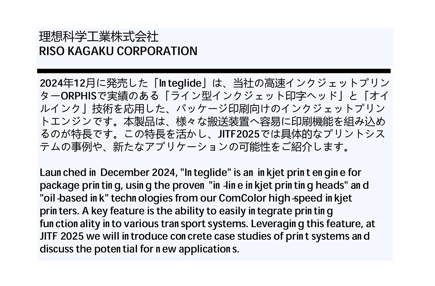 ![]() インクジェットプリントエンジン「Integlide」のご紹介 |