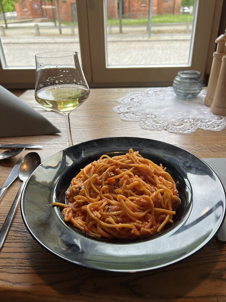 ドイツ生活が長い方にはわかって頂けるかと思いますが・・・時々無性にイタ飯が食べたくなるんですね。で、そのパスタの出来栄えをイタリアのそれと比べて「ガッカリ」するんですが・・・その一連のプロトコルまで含めてイタ飯が恋しくなるんです(笑)ここのイタ飯も、正直も申して「ハズレ」の部類ですが・・・それでもいいんです。ここで「ハズレでもいいから」イタ飯を見つけたのはラッキーな部類で、そうでなければケバプかベトナム飯だったでしょう。ケバプもベトナム飯も悪くはないんですが・・・そもそも店が無いんですね、ここには・・・
