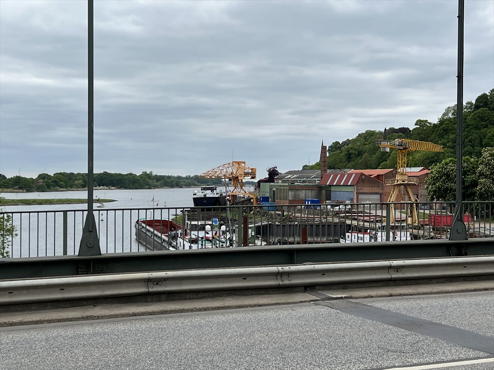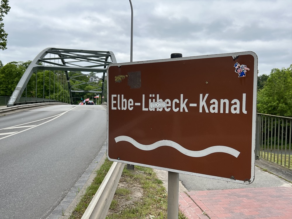 橋を渡ったあたりに郡の入り口を示す黄色の標識が出てきます。そこには「Kreis Herzogtum Lauenburg」と書かれているのです。「ラウエンブルク公爵領郡」・・・なんか、今もそういう Herzogtumが地名に使われているって、なんか楽しくないですか?(笑)
