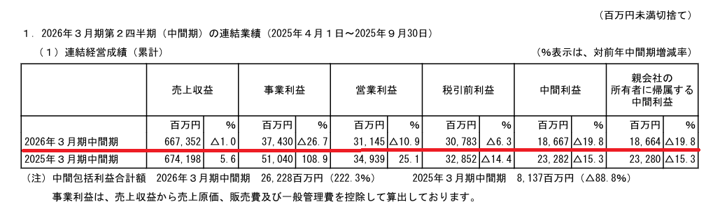 ■ 1. 総括:減収減益だが、本業収益は堅調・通期見通しは据え置き