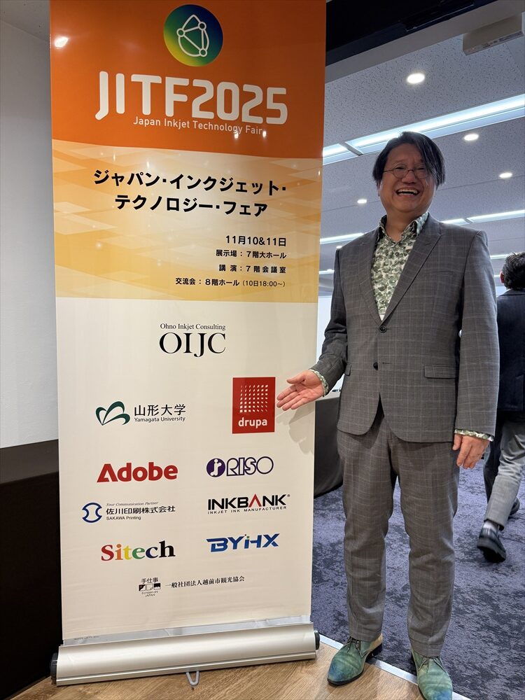 11月 10&11日の2日間、市ヶ谷の TKPコンファレンスセンターにて JITF2025(Japan Inkjet Technology Fair)を開催いたしました。テーブルトップ出展社・参加者・運営スタッフなど皆様のご協力のお陰様で大変すばらしいイベントになったと自画自賛しております!