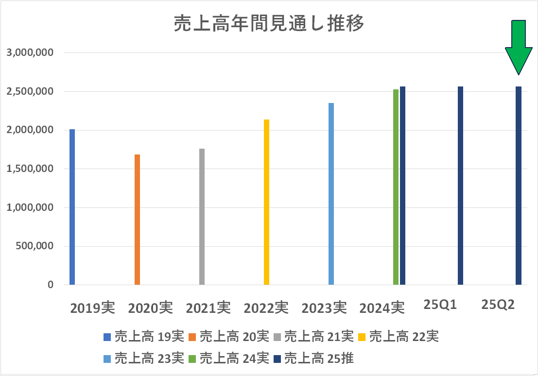 年間の見通しは売上高・営業利益とも変更していません・・・グラフで見るとこんな感じです。