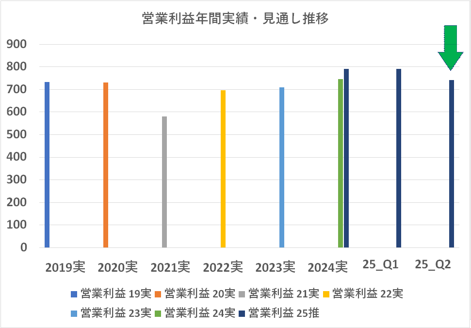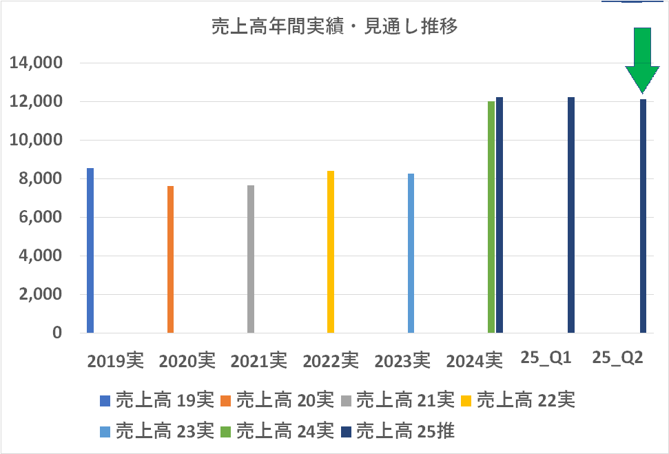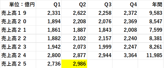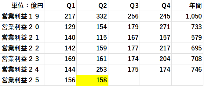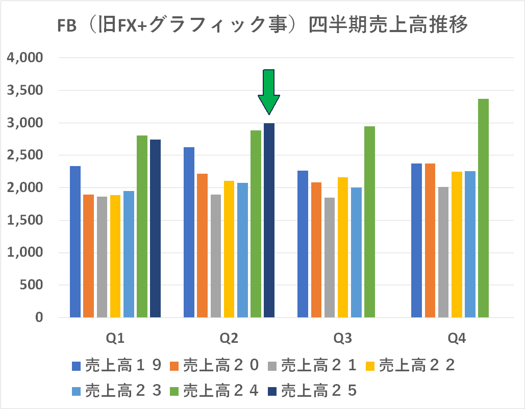 まあ、Q2までは特段どうこう言うことはないですね。2024年度に売上高が3割程インクリメンタルに増えていますが、これは本体からグラフィック事業部を移管したもので、その割に営業利益が増えていないのはグラフィック事業部からは利益が出ていなかったことを示していると考えられます。