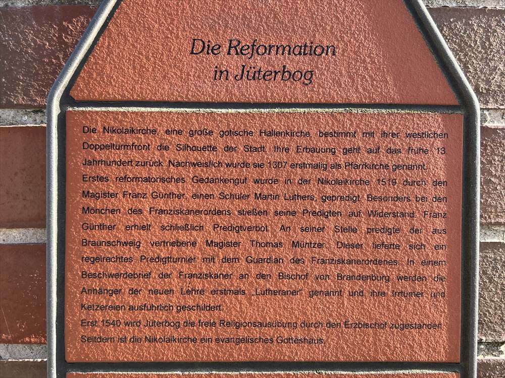 この教会は、長さ 71 メートル、幅 23 メートルあり、ユターボーグ周辺地域で最大の宗教建築物です。教会の壁は 3 種類の素材で構成されています。身廊は主にレンガゴシック様式で建てられており、一部は野石でできています。塔は野石で、より繊細な部分は砂岩でできています。内部にあるアーチ型のリブも砂岩でできています。身廊の外側は支柱で支えられ、高い窓で区切られています。南側と北側の増築部分は 2 階建てで、北側の増築部分はユターボークの市庁舎にある法廷のアーケードに似ています。