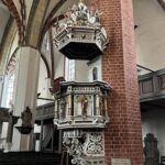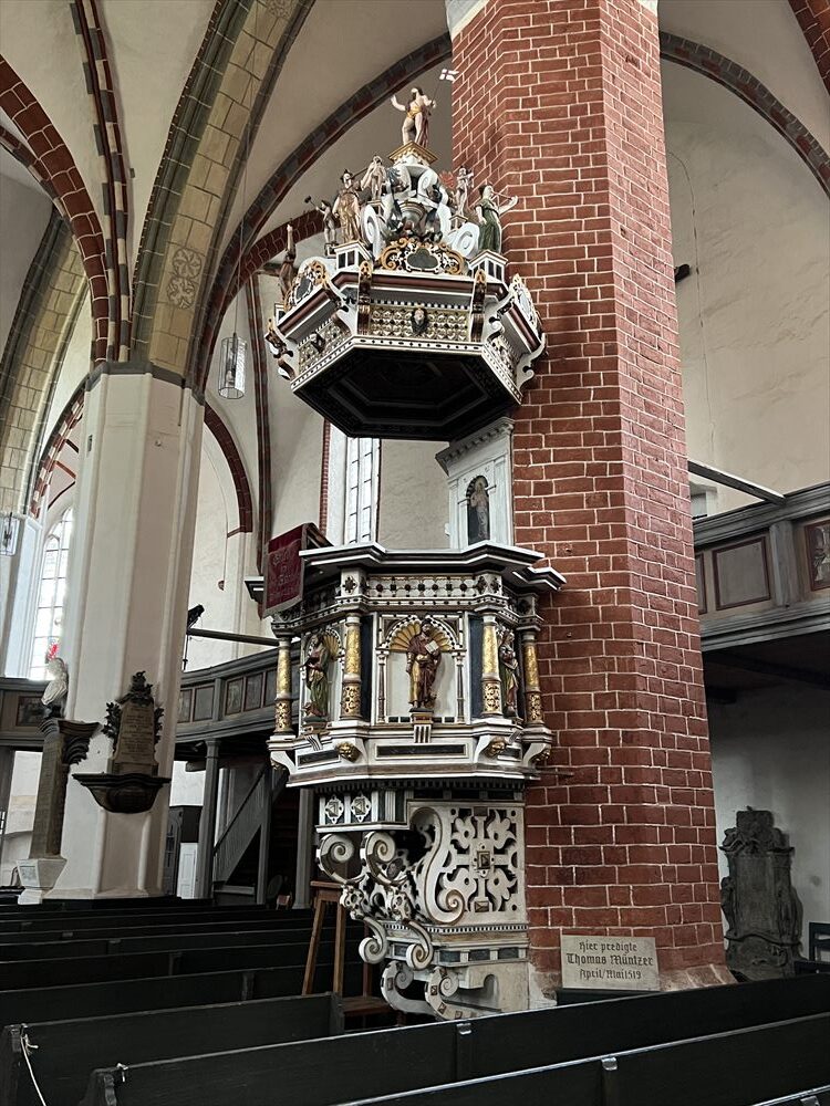 精巧に作られた木製の説教壇は、1608年に建てられました。ニッチには、福音書記者たち、聖ペテロと聖パウロ、善き羊飼いが置かれています。音響カバーは、復活したキリスト、プット、天使たちで飾られています。聖体箱は、1507年から1508年にかけて、後期ゴシック様式で建てられました。