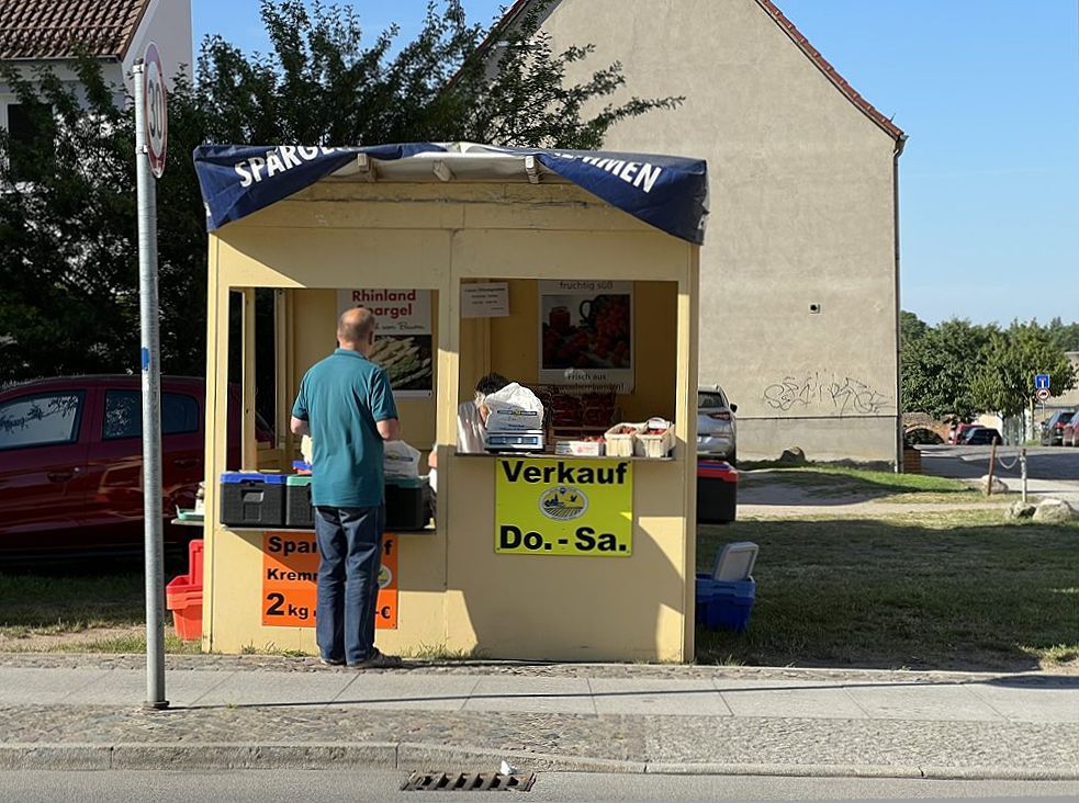 シュパーゲルを売る屋台が出ています。旧東独では旧西独より3割くらい安いようです。