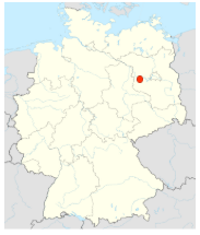 場所はベルリン中心部(中央駅)から西に約 70km、鉄道で約1時間のところにあります。途中、真ん中あたりに Posdamがあるので帰りに寄ってみましょう!私がこの時(2003年 5月)に泊まっていた AirAnBのあった Charlottenburg駅からは RE1で一本だったので大変便利でした。