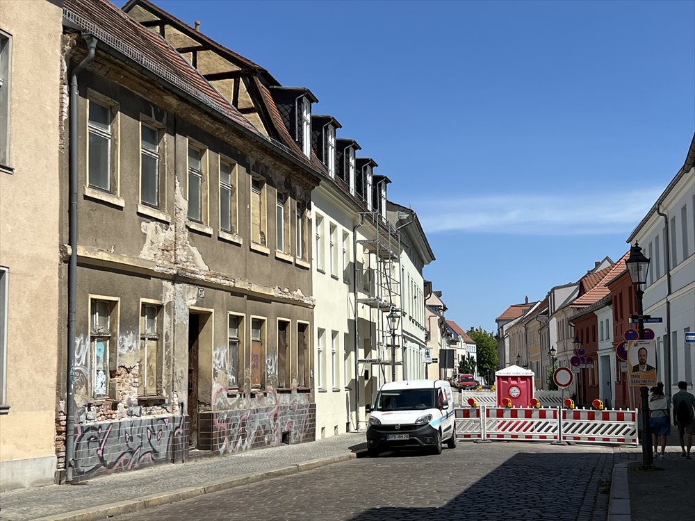 このあたり、町の改修(Sanierung)の最後の区画なのかもしれません。このあたりが終わってしまうと「旧東独らしさ」がなくなってしまう…そんな気がして、最後に残された改修前の写真を何枚も撮ってしまいます。配管工のマイスターに家(店)だったようです。