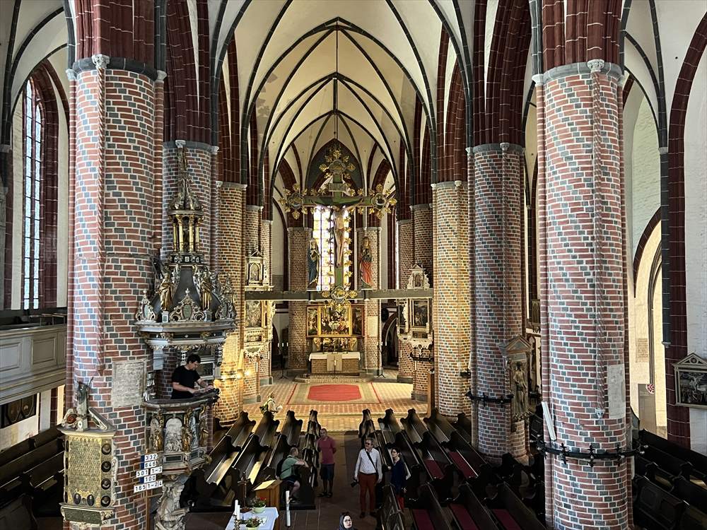 1456年以前、建築家H.ラインストープの指揮のもと、3身廊の階段式ホールと回廊式聖歌隊席を備えた新建築の建設が開始されました。統一感のある後期ゴシック様式の内部は、らせん状に上昇する模様のある円柱が特徴です。当初の設計には、聖歌隊席にある 5 つの平らな輪状礼拝堂、北側の礼拝堂の増築部分、2 階建ての南側の増築部分、聖具室も含まれています。南側に西側の礼拝堂が増築され、1475 年に建設は完了しました。建設当時の巨大な屋根構造は完全に保存されています。