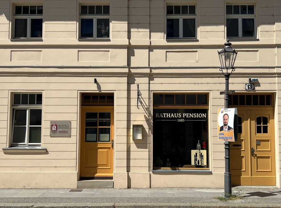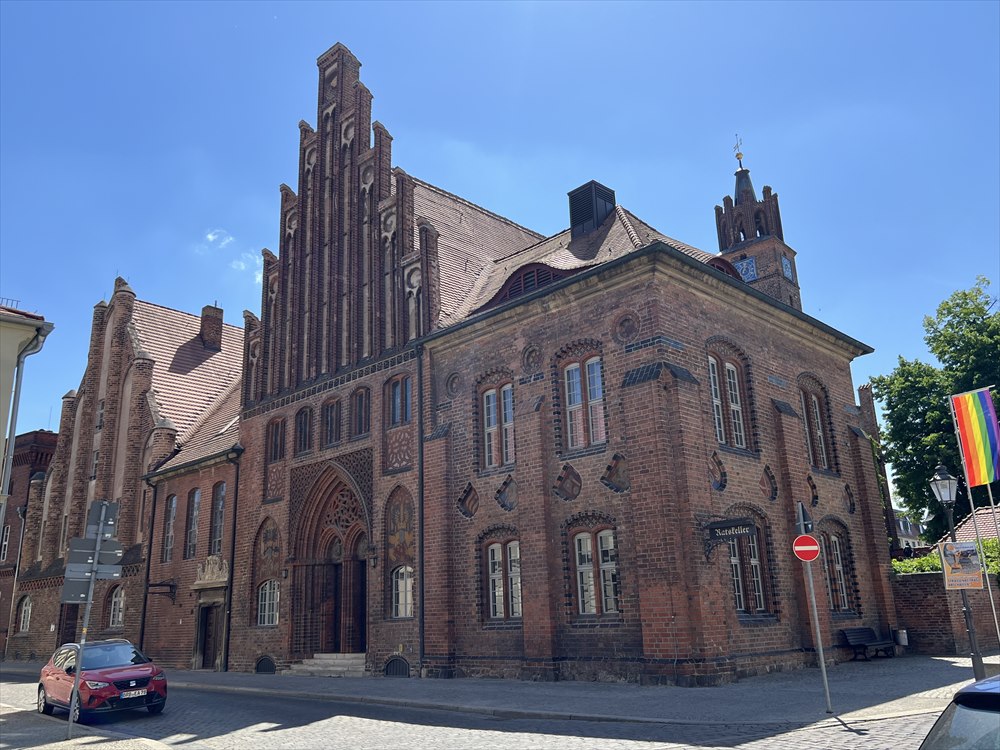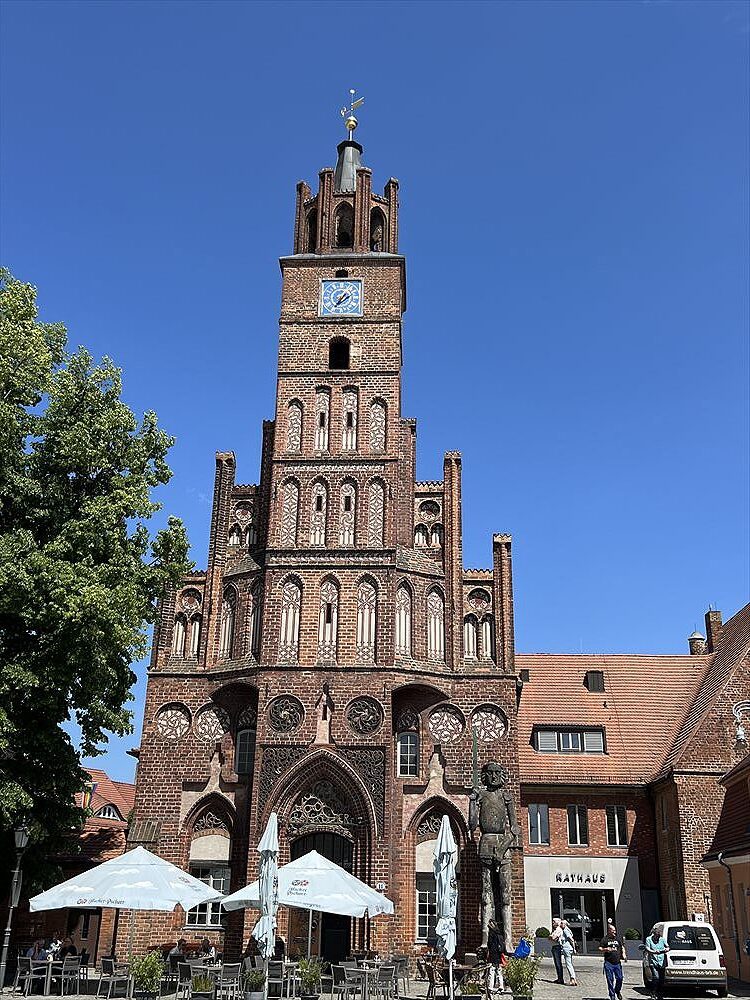 1468年頃、旧地下室の場所に現在の市庁舎が建設されました。1階には3つの身廊を持つ市場ホールがあり、その上には複数のゾーンに分かれた評議会室がありました。市場に面した塔は、刑務所、法廷、文書館、武器庫、時計、鐘など、市議会を象徴する施設でした。陶製の装飾は、ツィーザールやタンゲルミュンデでも活躍した、ブランデンブルク出身の無名の建築家による代表作です。スパーゴシック様式の屋根も、その大部分が保存されています。