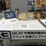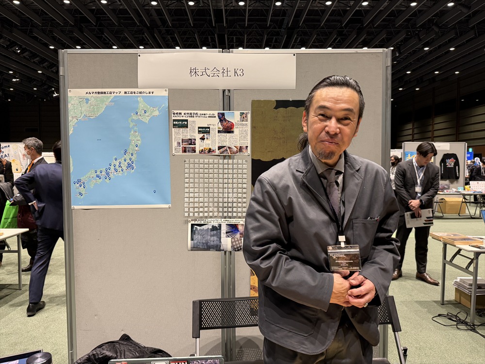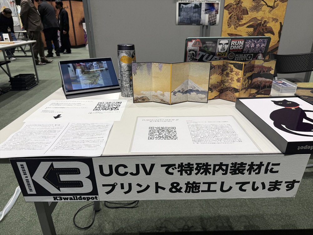 【K3】施工界のレジェンドの君和田さんに初めてお会いしました!ピアノブラック加工をした板にUVプリント」という技法で非常に高級感のあるアイテムを訴求していました。