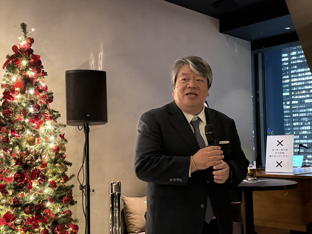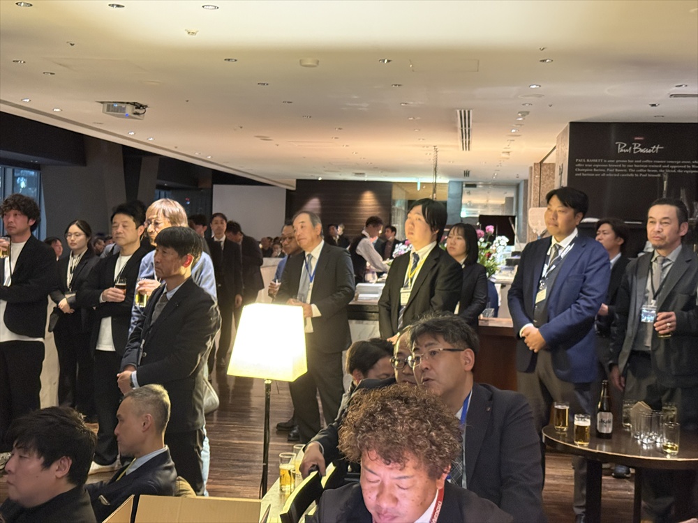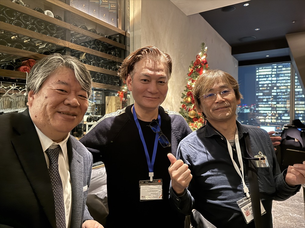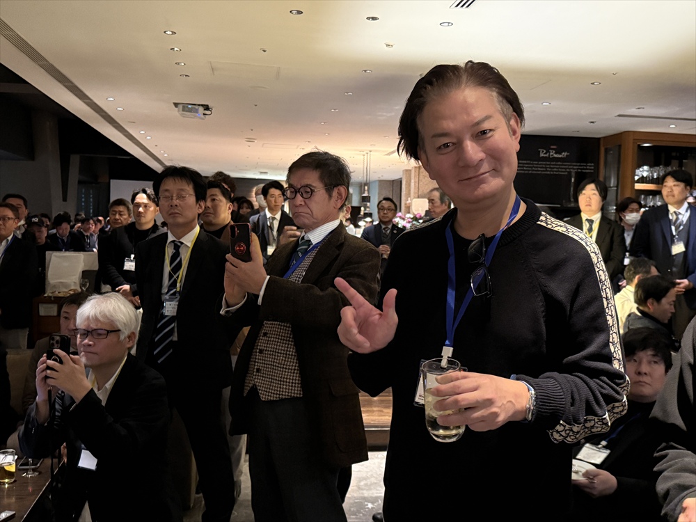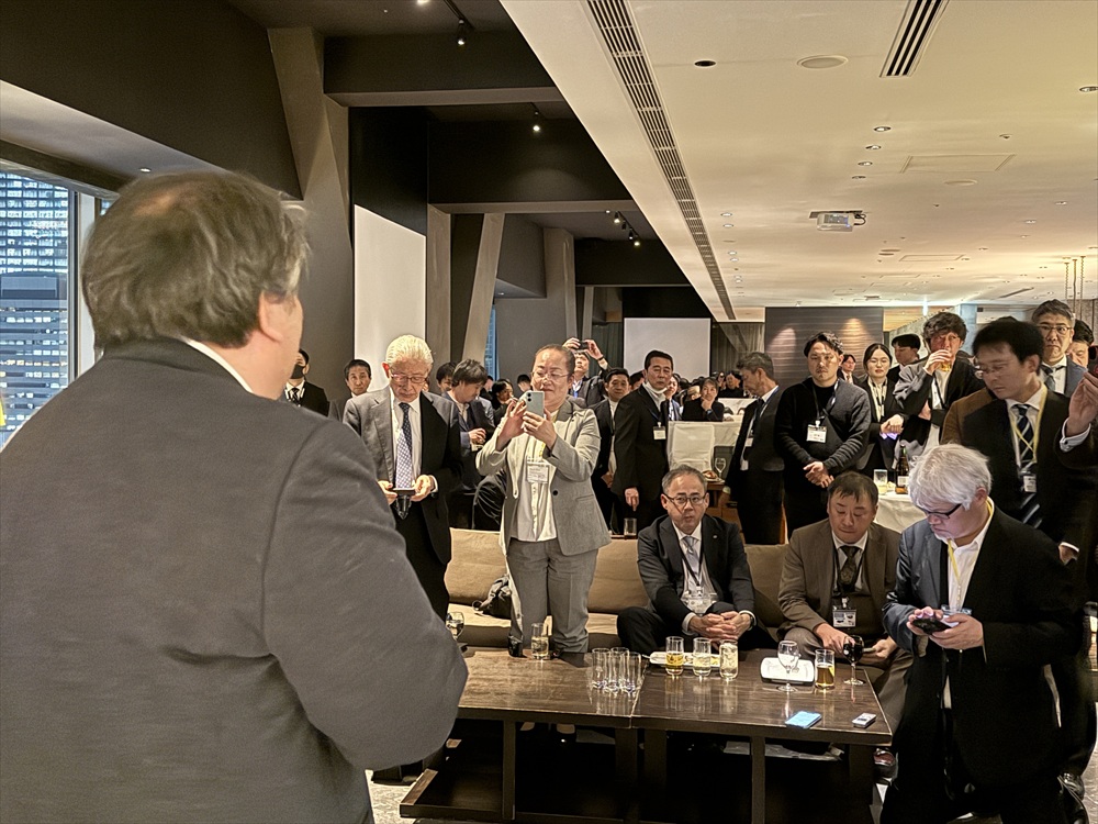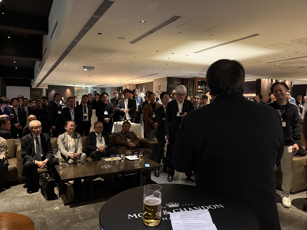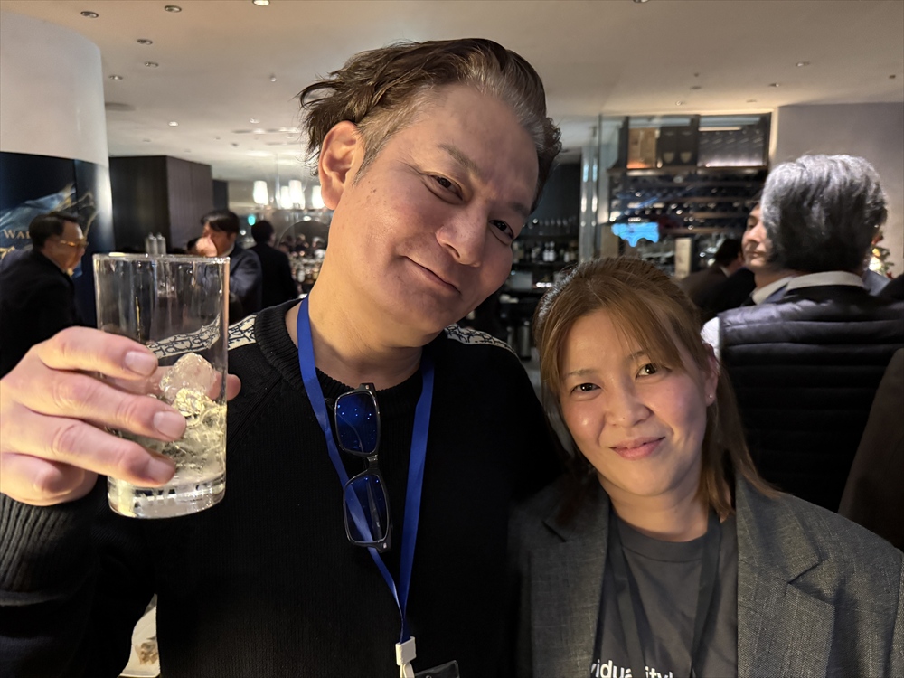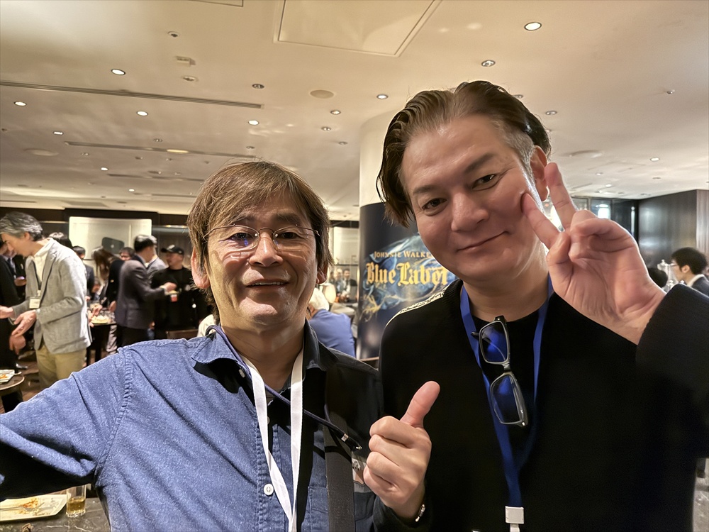 ミマキの創立50周年記念イベント第2部は XEX TOKYO TheBAR&Café(大丸東京店内13階)に場所を移してパーティとなりました。日本の「よくある」パーティのように、業界やユーザーの重鎮たちによる挨拶や乾杯が長々と続くわけではなく、冒頭に池田社長による挨拶とミマキの歴史の説明があった後は、乾杯の発声もなく、高級感のあるレストランでの和気あいあいのパーティとなりました。ちょっと欧米的で新鮮だったと思います!池田社長というかミマキが国際標準を意識したアレンジなのでしょうか?・・・知らんけど(笑)