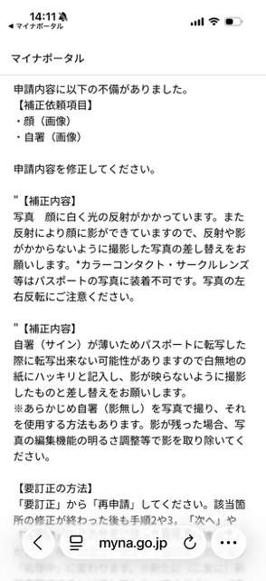 で、何が不備なのかというと・・・「顔写真が要求基準を満たしていない」「自署サインが要求基準を満たしていない」ということらしい。そんな要求基準があるなら先にちゃんと書いておけよな!