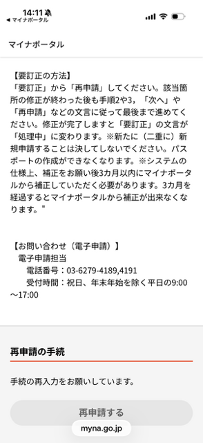 この画面を設計した輩は国語を習ってきたのか?上では「再申請は・・・利用できません」とあり、同じ画面の下では「再申請が必要です」とある。どうやればいいのさ?