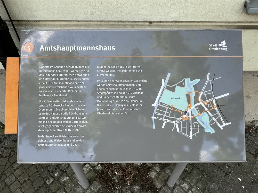 この街で最も古い建物である、カヴァリエハウスとも呼ばれるこの建物は、1657年に、選帝侯ルイーズ・ヘンリエッテの命により、選帝侯の行政長官のために建てられた。当時、行政長官は広範な権限を有しており、例えば、行政管轄区域における最高裁判官および軍司令官であった。