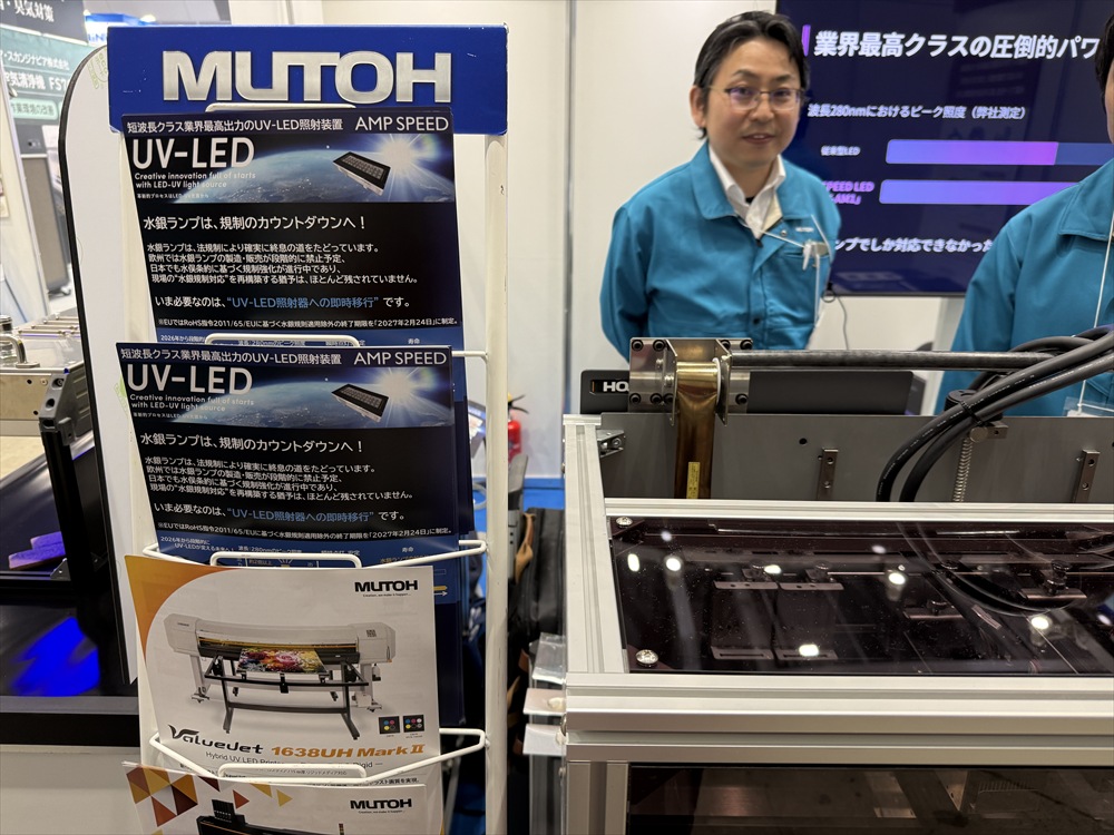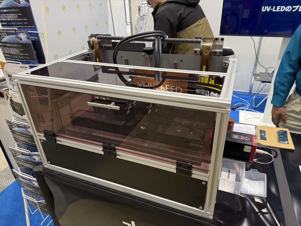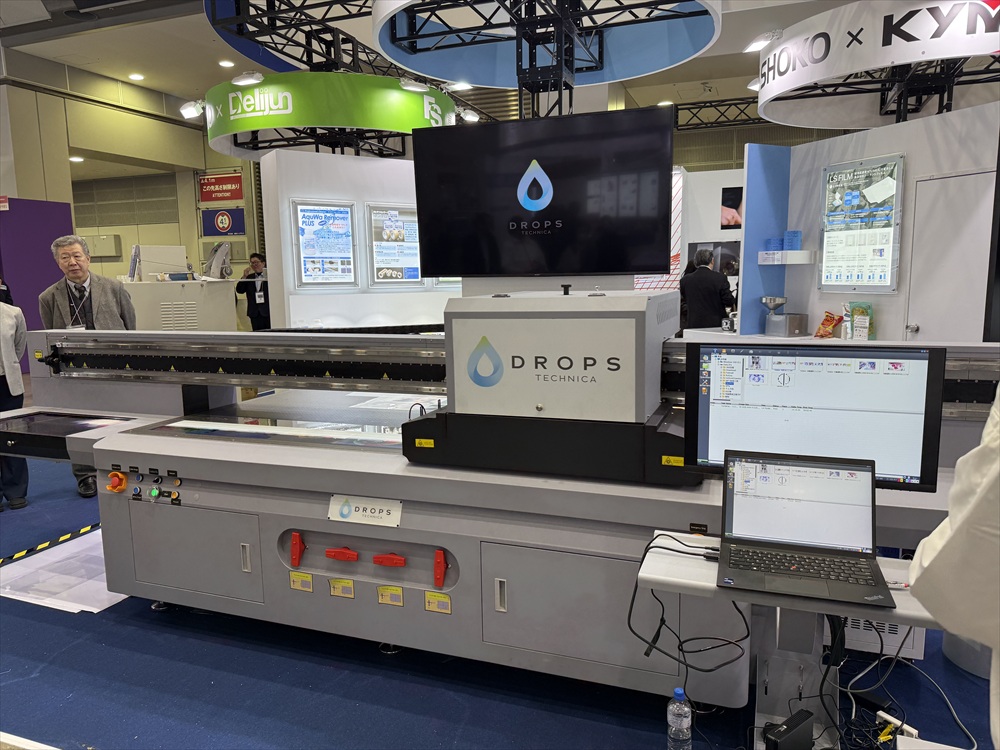 グラビア印刷のドクターブレードなどの周辺機材を扱う会社。ここで別会社(Drops)を作って中国 King-T社の UVフラットベッド機を扱うとのこと。ヘッドは富士 DIMATOIX製で性能が一番いいとのコメント。しかしながら富士フイルムも中国(JHFと FLORA)から引いて OEMで販売しているが、そことはどう差別化するのか?という問いにはピンと来ていなかった様子。まあ、これからですね!