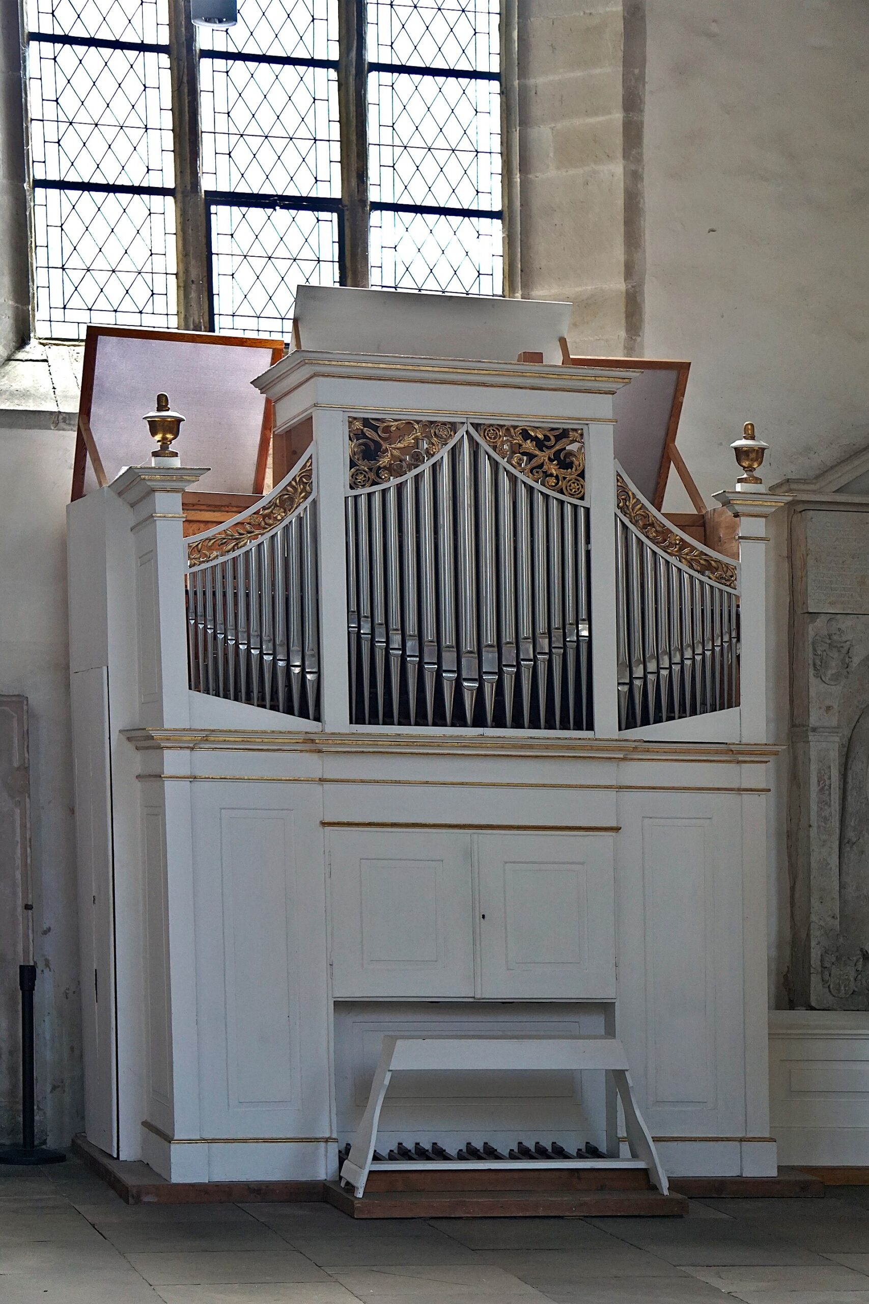 バロック様式のファサード(1700年頃)の後ろにあるラデガスト・オルガン(1855/66年)は、バックポジティブとシュライアーヴェルクを備えています。