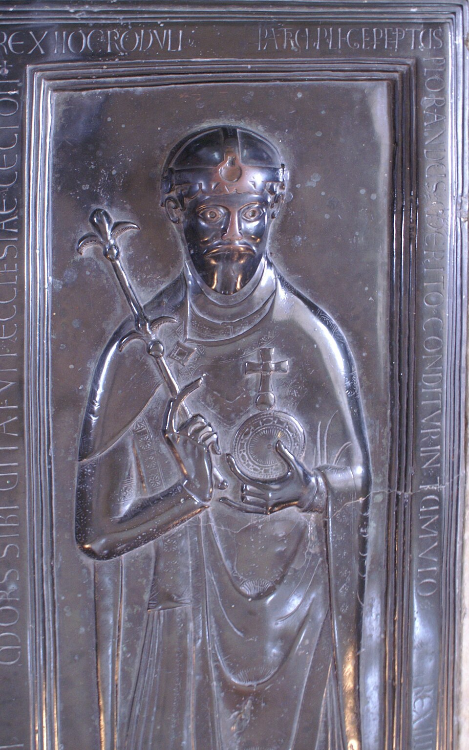 メルゼブルク司教ヴェルナー・フォン・ヴォルケンブルクは、おそらく当初の建築構想を完成させるため、交差部分の上に5つ目の塔の建設を開始しましたが、この塔は1230年に倒壊しました。ルドルフの支持者であったこの司教のおかげで、1080年にホーエンメルゼンでの戦いで負傷し、その傷が元で亡くなったルドルフ・フォン・ラインフェルデンは、メゼルブルク大聖堂に埋葬されることになった。しかし、追放された対立王 (1077年から1080年にかけて、ハインリヒ4世に対して)の死は、多くの同時代の人々から神の裁きと見なされていたにもかかわらず、ルドルフ・フォン・ラインフェルデンがメルゼブルク大聖堂に埋葬されたのは、この司教のおかげでした。