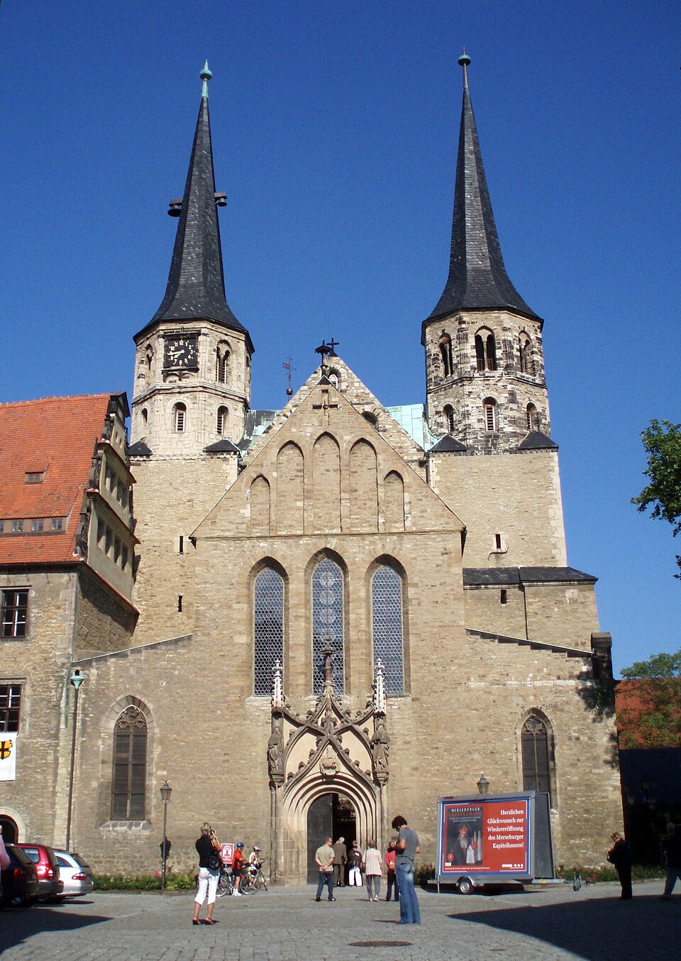 第二次世界大戦中の空襲により、街自体だけでなく、近くにあるBUNA工場やロイナ工場も被害を受け、城の北翼と東翼、聖堂の聖歌隊席、聖歌隊席が損傷しました。2006年8月17日、文化大臣ヤン・ヘンドリック・オルベルツと司教アクセル・ノアックが出席した式典で、改装されたチャプターハウスが除幕されました。2010年にデッサウで開催された国際建築専門展示会を機に、大聖堂の自由は新たな活力を得ました。新しい訪問者・情報センターが設立され、ウィリー・ジッテ・ギャラリーがオープンし、ヨーロッパ・ロマネスク様式センターが設立されたのです。メルゼブルクの城および城の庭園とともに、この大聖堂は「ザクセン・アンハルトの夢の庭園」という総合作品の一部となっています。2011 年以来、レギーネ・ハルトコフが大聖堂の建築責任者を務めています。