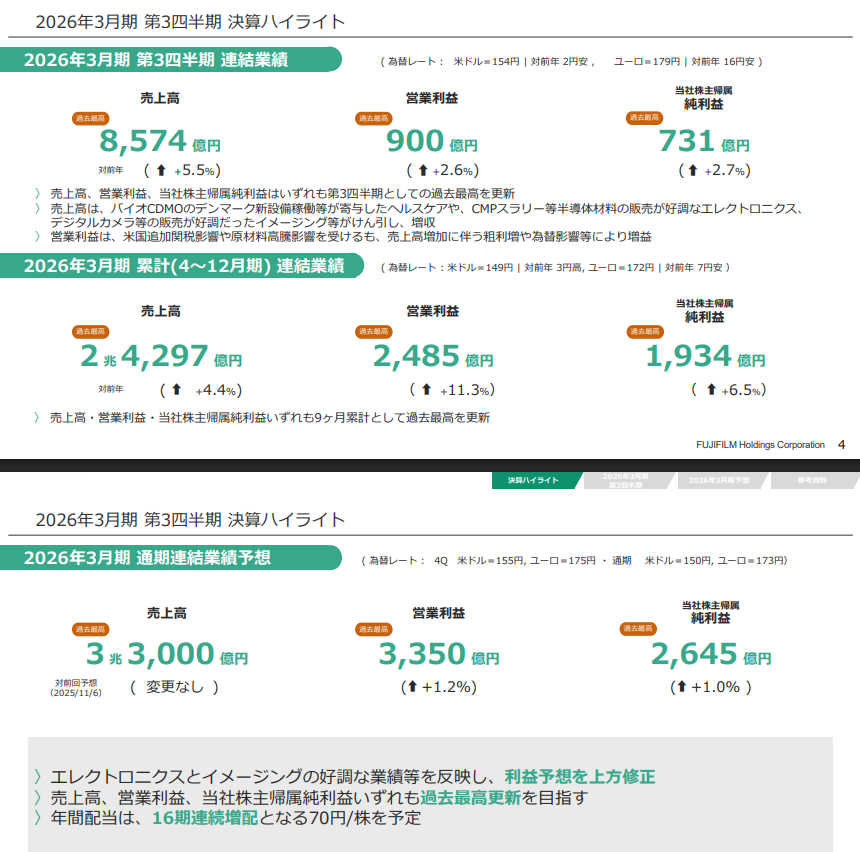 業界各社の決算状況を見ていきます。今回は 2月 5日に発表した富士フイルムです。