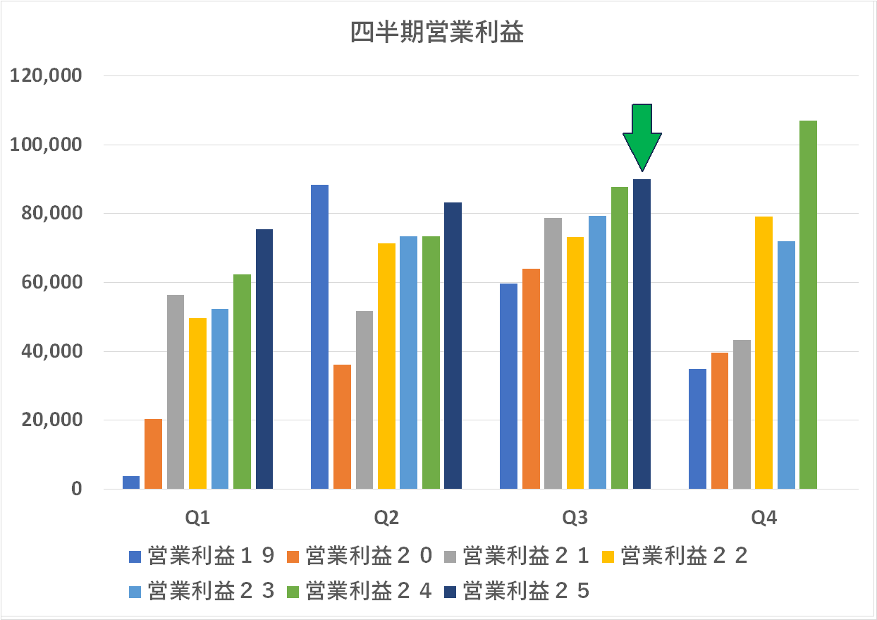 四半期を追うごとに右肩上がり・・・美しいグラフです(笑)