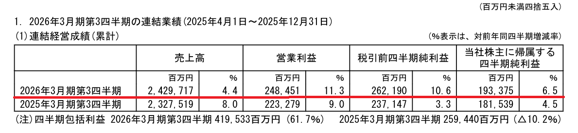 日経平均はこの日は下がってませんよ!ここ暫くは高市効果で株は全般に上がってる中で(これ自体は、私は決して評価してません)、なんでこれだけの好決算を公表して株価は下がるの?