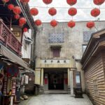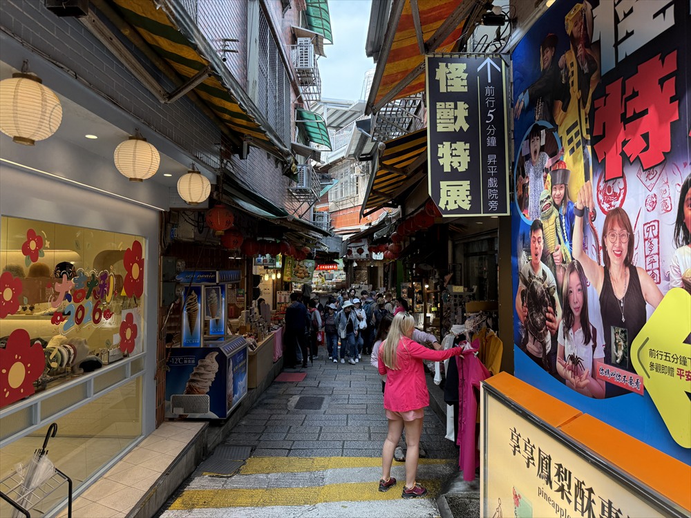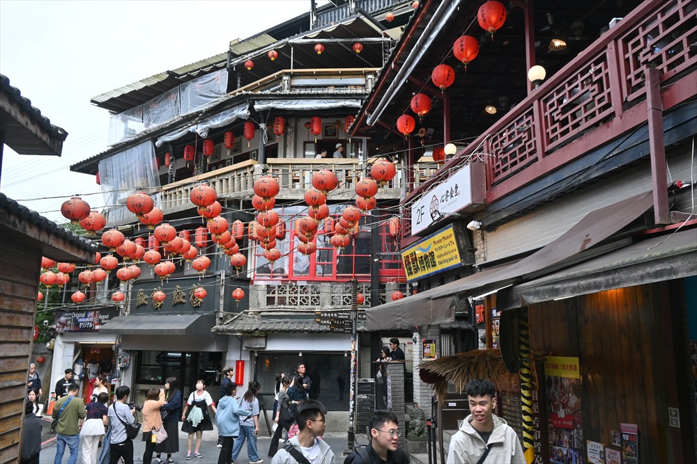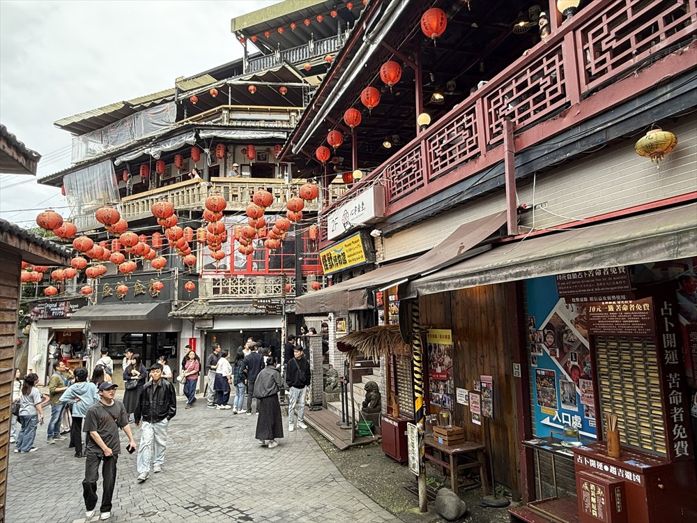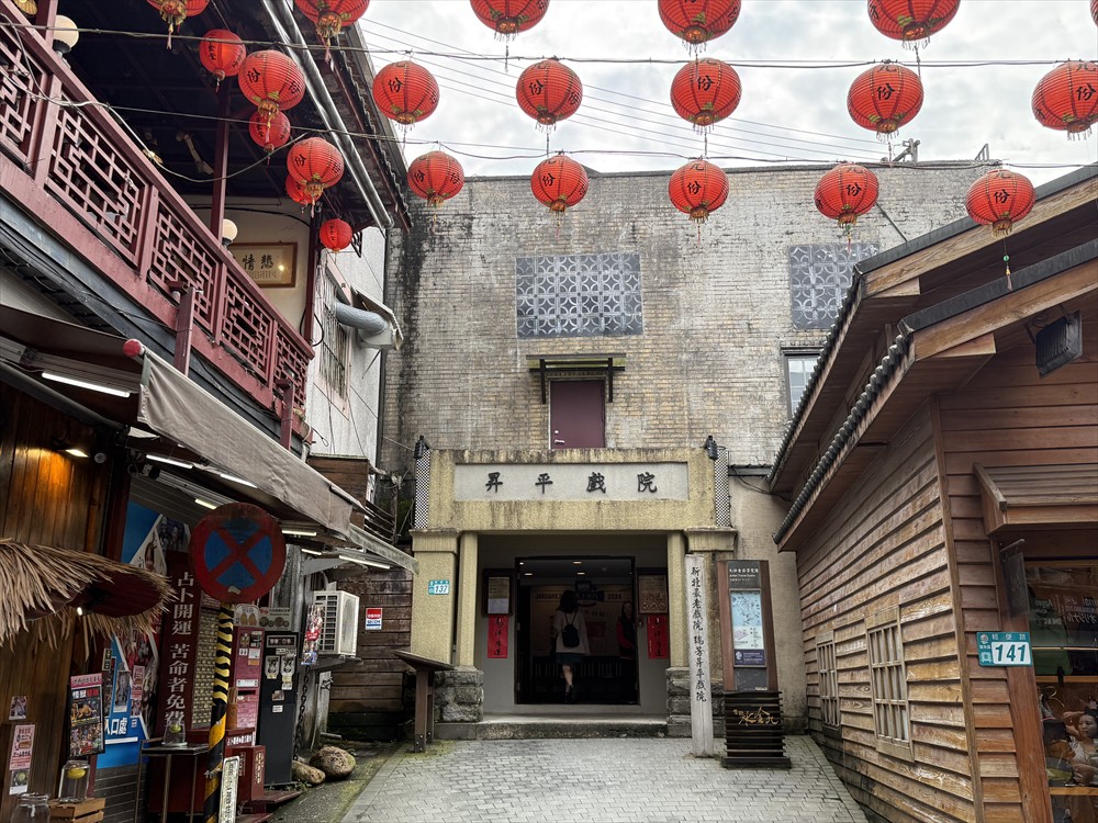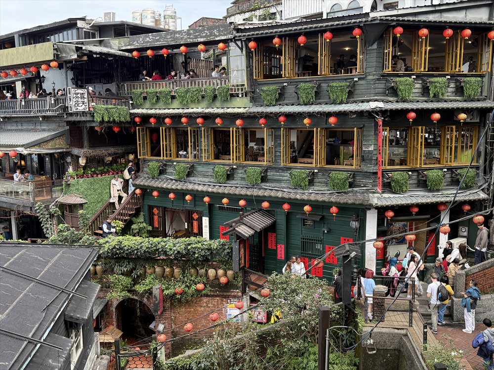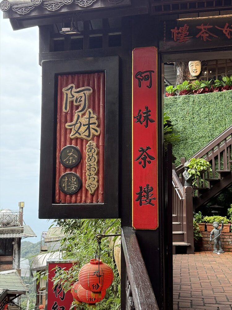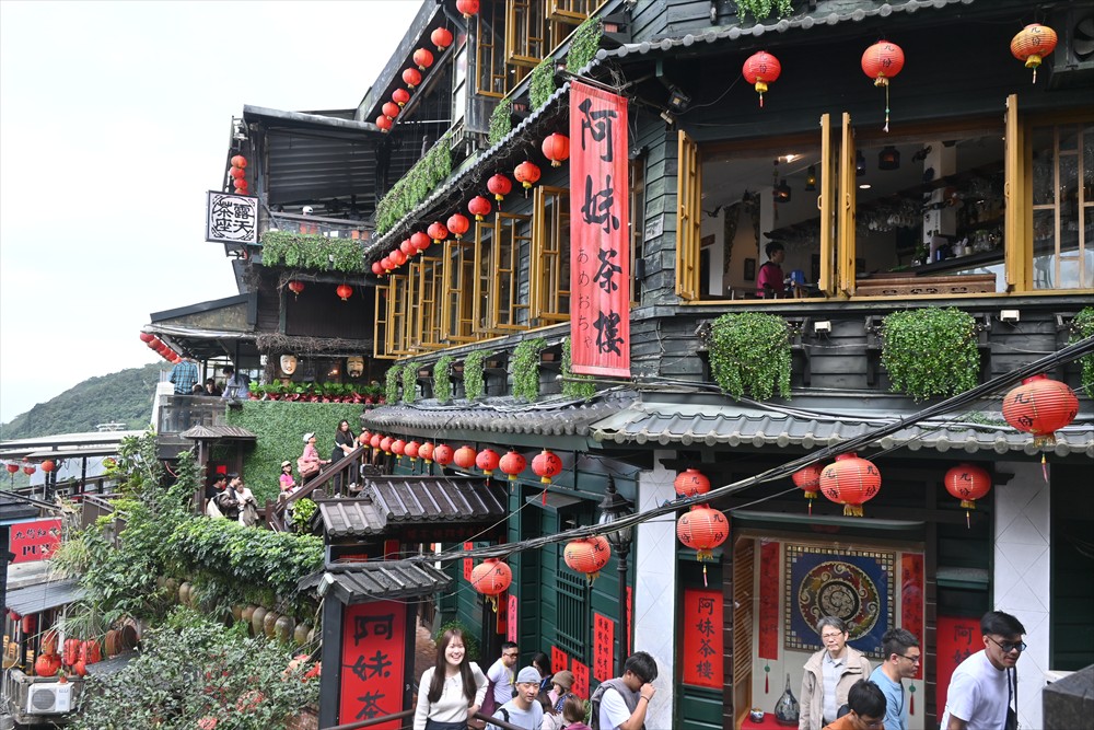 途中で右に折れて坂道を少し下ったところに「千と千尋の湯屋」とされる「阿妹茶楼」があります。昼間はさほどでもないですが、夜になって赤い提灯に明かりがともるとかなりそれらしい雰囲気が出てきます。