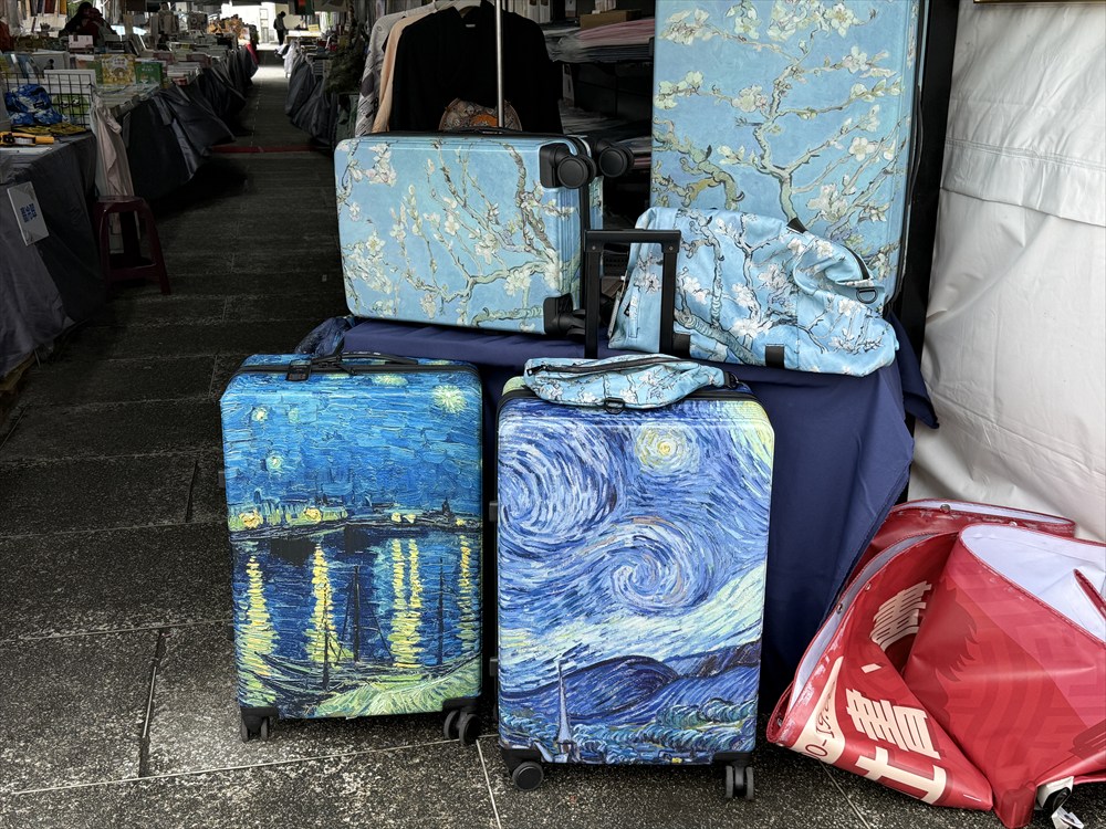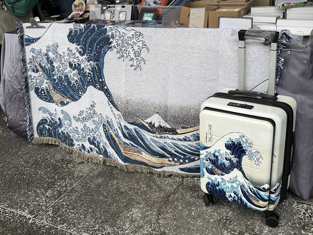 ただスーツケースの横にまで回り込んでプリントするのは流石にインクジェットでは無理?北斎の神奈川沖浪裏はインクジェットを駆使しているように思われますが、下の写真の方は違うかもですね