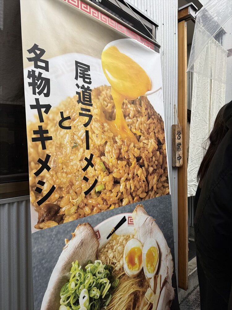 尾道にある尾道ラーメンの行列店「しょうや飯店」の店先にあるバックドロップです。こういうのは増えましたね!画質も向上し実に美味そうです!