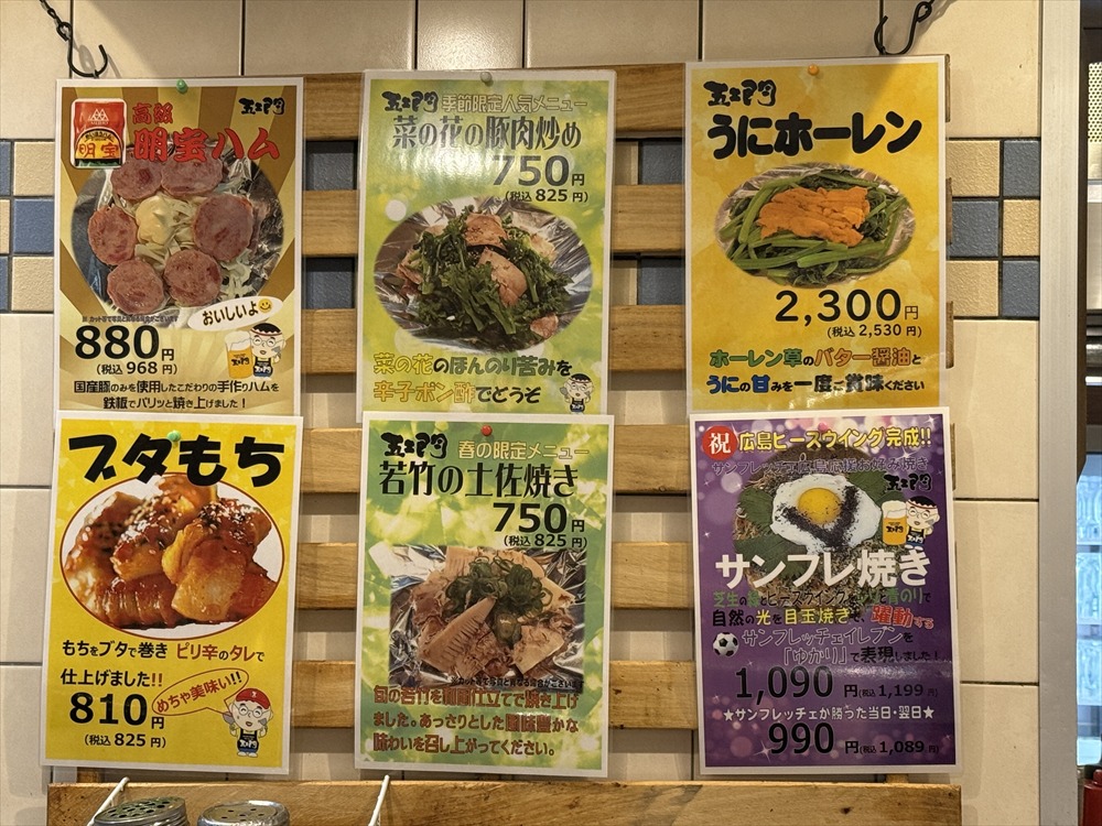 こちらは広島にあるお好み焼きの名店「五ェ門」の店内にあった告知ポスターです。内容や価格が頻繁に変わる割に全国チェーンでもない限りはさほど数に要らない飲食業ではもはやインクジェットは当たり前になりましたね