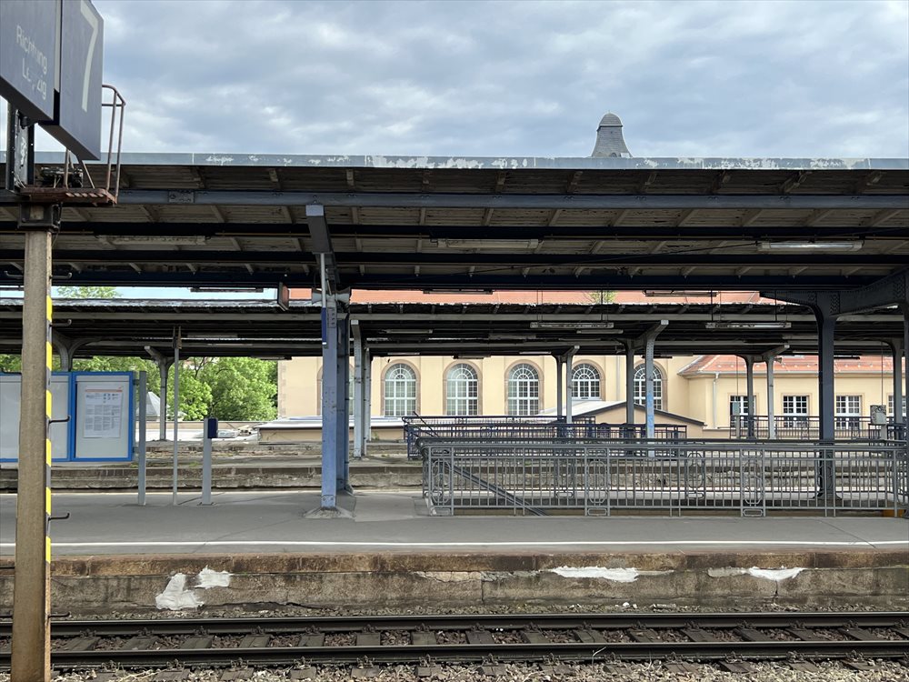 これから歩く町はかなり残念なことになっているのですが、駅舎はこんな状況とは不釣り合いなくらい立派な建物です。鉄道が急速に普及し整備された 1850年代頃のドイツの勢い…またドイツ帝国が樹立される前なのでプロイセン他のドイツ諸邦の勢いを感じることが出来ます。