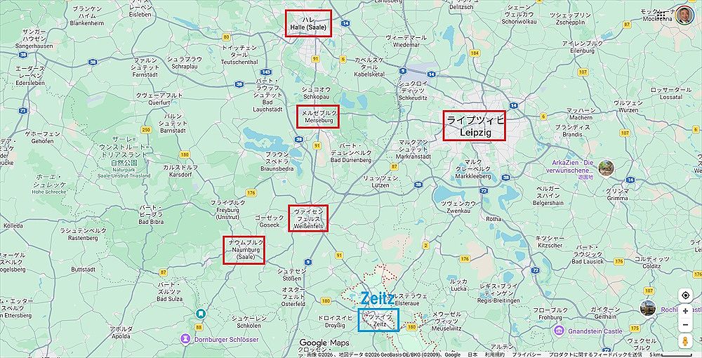 場所は大都市のライプツィッヒから40分弱、ここまでにご紹介したメルゼブルクやナウムブルクからも至近距離にあります。まあ知名度的には★★★でしょうけどね(笑)