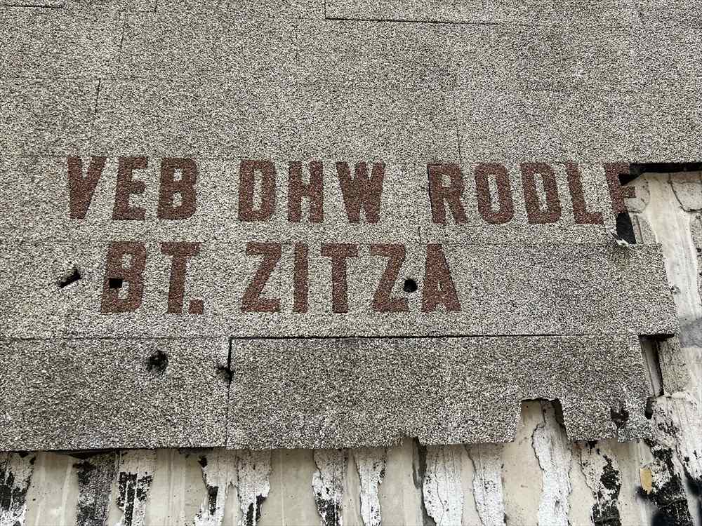 組織の変遷: 看板にある「VEB DHW RODLE BT. ZITZA」という表記は、1970年代から80年代にかけての産業再編の結果です。ツァイツの工場が、ロートレーベンにある巨大な化学コンビナート「DHW(ドイツ水素添加工場)」の「分工場(Betriebsteil = BT)」として組み込まれた時期の名称であることを示しています。