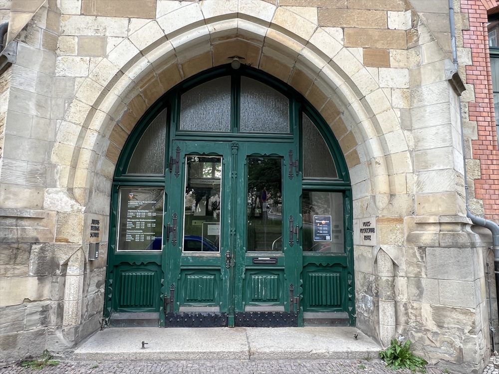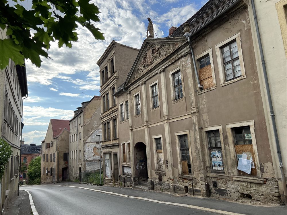 現状: 現在は建物の主要部分(躯体)のみが残された状態です。保存状態が悪化したため、歴史的建造物を維持するためにザイツ住宅公社(WBG)が建物を取得し、補強工事を行いました。屋上には特徴的な彫像が立っています。 建物が面している「ブリュール(Brühl)」地区はザイツ発祥の地とも言われ、1262年の文書にも記されている非常に歴史のあるエリアです。