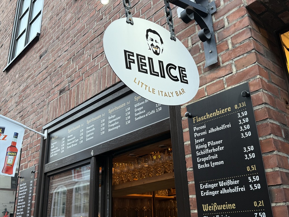 駐在していた当時、Vesvioって美味しいピザ屋の兄ちゃんだった Felice(フェリーチェ)が「単位面積当たり町一番の売上を誇る繁盛店」のオーナーになった!私が住んでいたアパートの向かいにあったタバコ屋を立ち呑みバーに改装したものだが、意外と「交通の要衝」にあり(笑)市長や街の有力者から若者まで通りがかりに一杯やっていく。イタリア人はイタ飯屋をやって、リューネブルクには結構な数がありそれぞれ繁盛してるんだけど、彼はそれとは違った方向を目指して人気店を作り上げた。こういうのも才能だな!