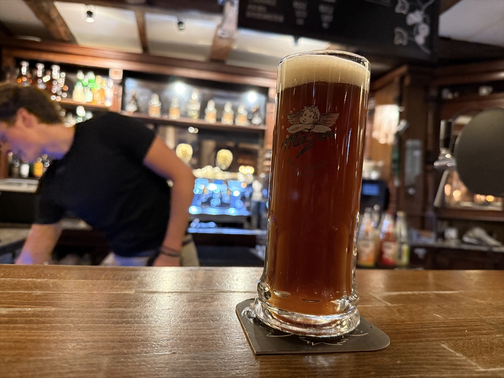 いつもは Feliceが最後の一杯の店なんだけど、ちょいと物足りなくて Melzerっていうビアホールへ!そこでたまたまカウンターの横に座った兄ちゃんと話して見たら・・・なんと駐在時代にウチの長男が通っていた小学校で一学年下だったとのこと!学校に日本人の子供がいたようなおぼろげな記憶があるとのこと!ひえ~!そんな偶然ってあるんだね!盛り上がってしまった(笑)
