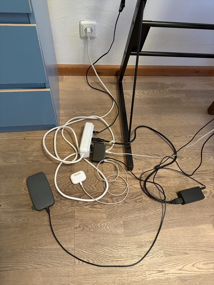 窓からミヒャエリス教会が見えて、トイレやバスは廊下で共用のシンプルなアパートに一週間滞在します。部屋に入って最初にやることと言えば、ドイツ仕様のテーブルタップに急速充電器をかませて有らぬ限りのものを充電するんです。こちらではスマホは常時繋がれる電波を探しているのでバッテリーの減りが異様に速いです。一日3回は充電が必要なのでパワーバンク(モバイルバッテリーのことを英語・独語ではこういいます)は必携です。