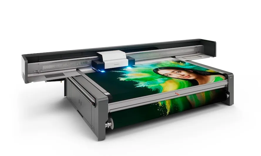富士フイルムのB2レボリアは、ブースの一角にあるバリアーで遮られた状態で展示され、大いにアピールされていた。しかし、Revoriaを見ようとする人たちの背後には、ロールフィードインクジェット印刷機を説明するバナーが隠されていたのです。しかも、1台だけでなく、2台の新しいロールフィードジェットプレスが登場したのです。